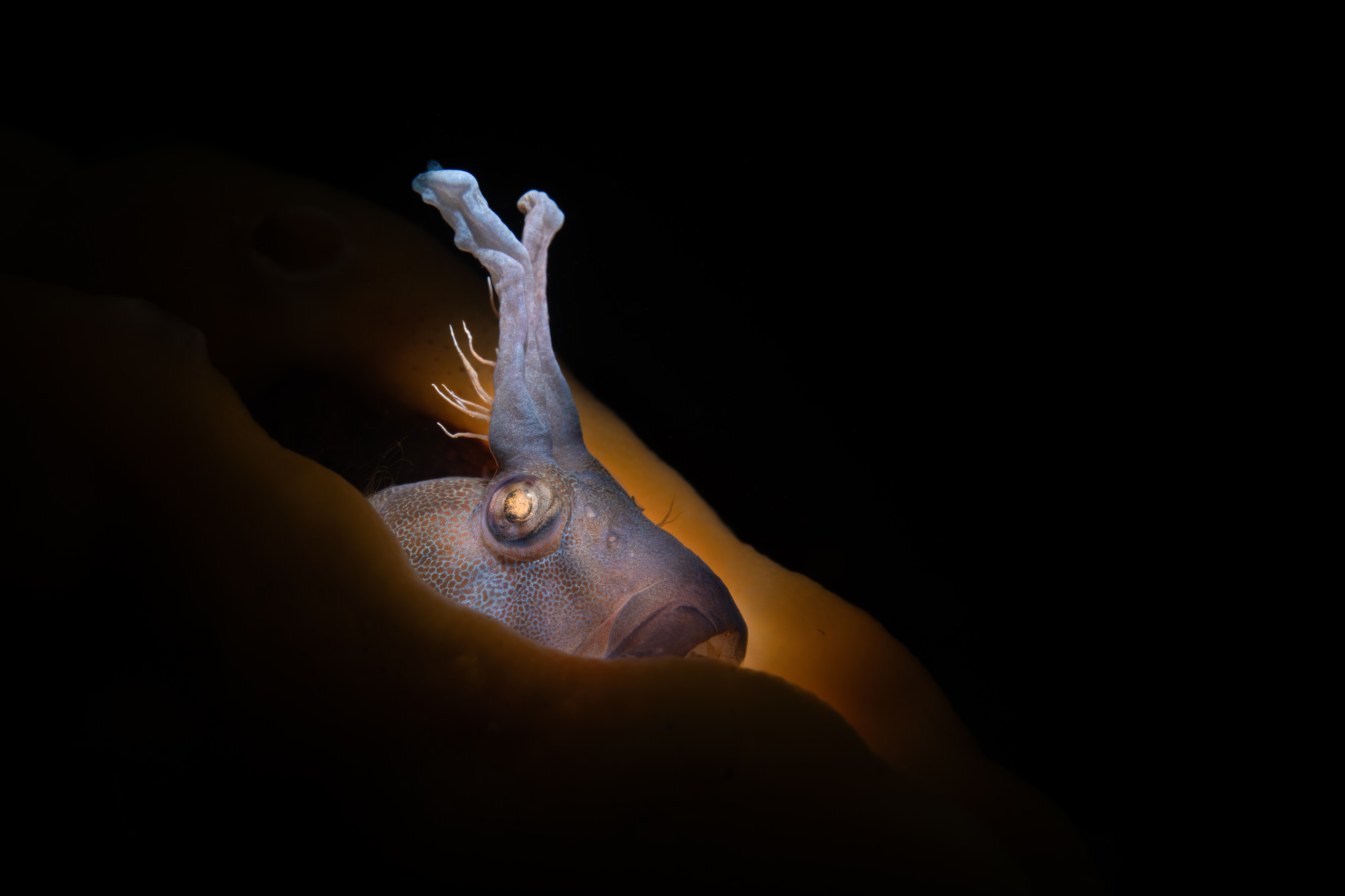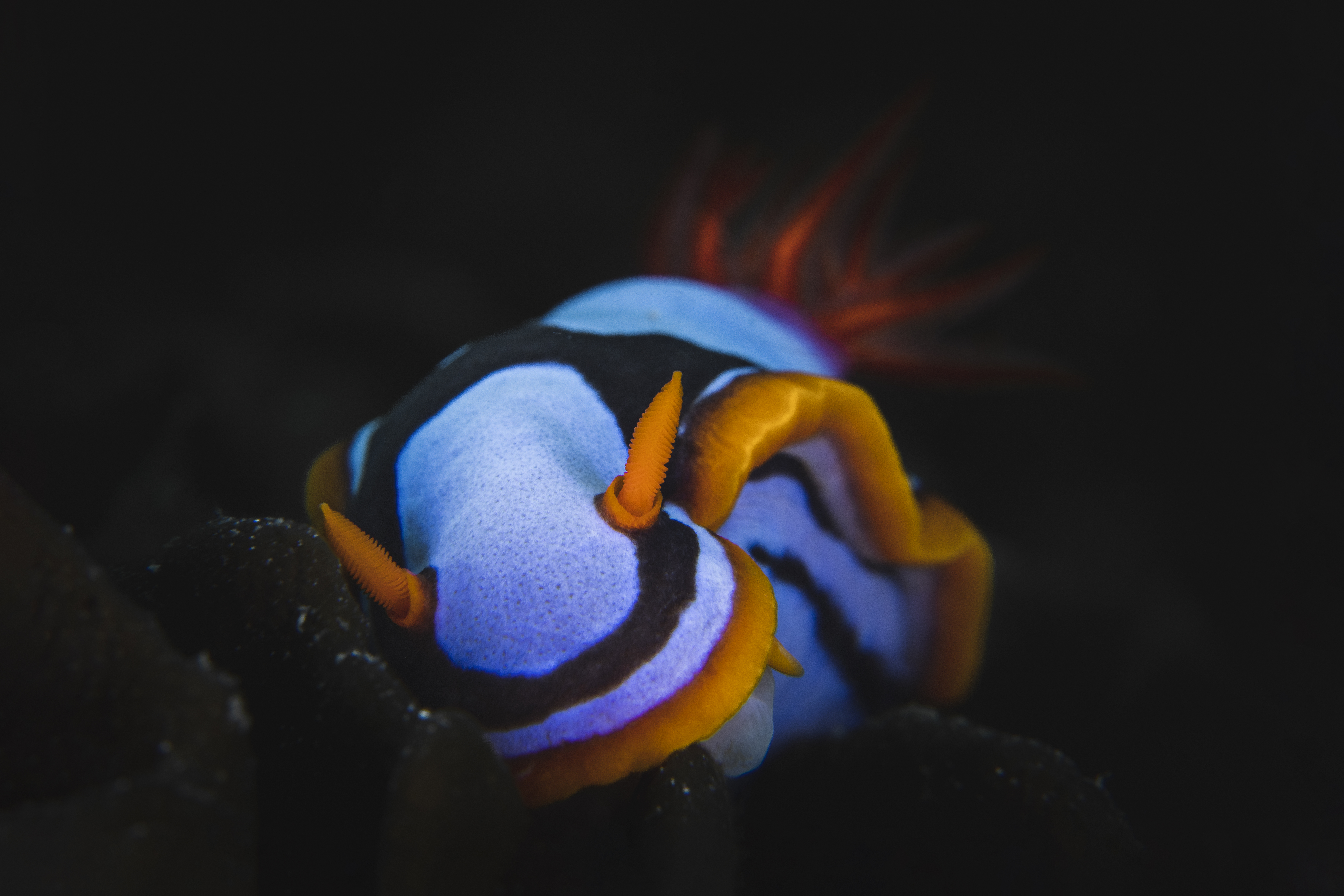 Due to the tiny depth of field that macro lenses offer, you’ll often find yourself needing to shoot at a lot higher apertures than you’d be used to on land. I usually shoot around f/8 and above, which still gives plenty of beautiful bokeh but allows enough of the image to be in focus that you can get a good understanding of the subject. Keep in mind that these high apertures are another reason that strobes are so important, you’ll be cutting out a lot of light with the f-stop, so you’ll need to add it back in with strobes to keep your image well exposed.