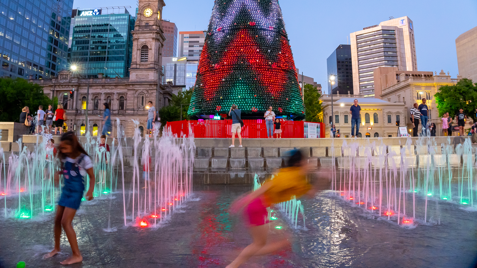 Twilight photography – Victoria Square's iconic Christmas tree and this one-day-only of Adelaide's Maker Markets and entertainment. Sunset will be 8:21pm.